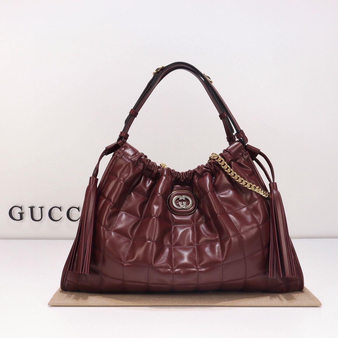 Gucci Deco Medium Tote Bag in Red Wine 43*28*8 CM (Mirror Quality)