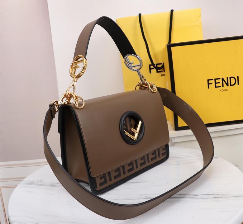 Vitello Century F is Fendi Bi-Color FF Shoulder Bag in Brown 25*18*10 CM (Next to Original)